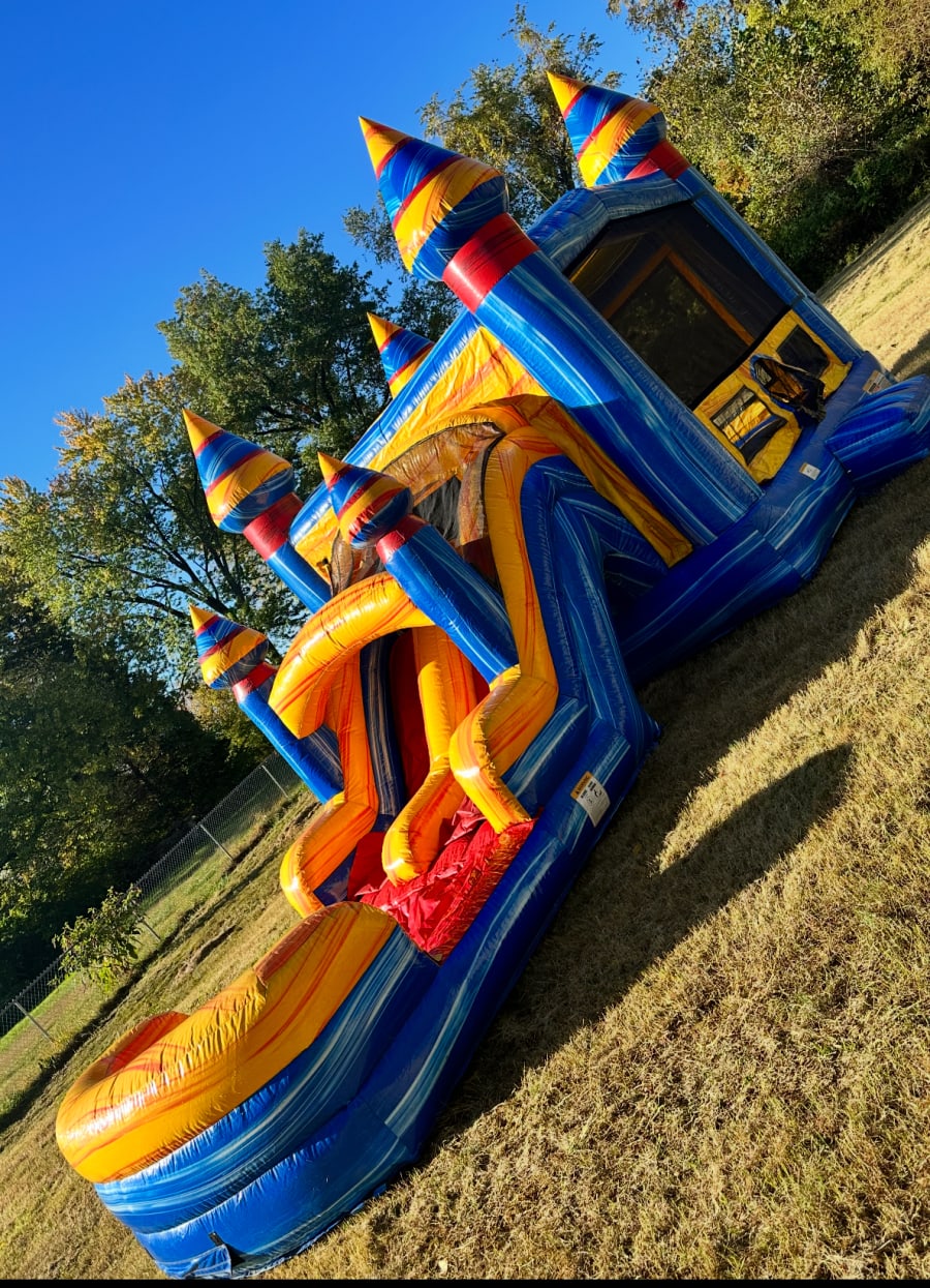 Make every celebration epic with the Arctic Rush Combo. This large bounce house combo features a bold blue and yellow castle theme and a thrilling double lane slide. Designed for ages 2–13, it’s perfect for birthday parties, school events, and family get-togethers. ๐๐ฐ