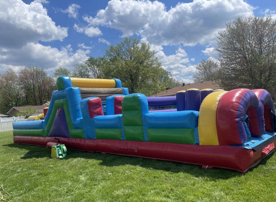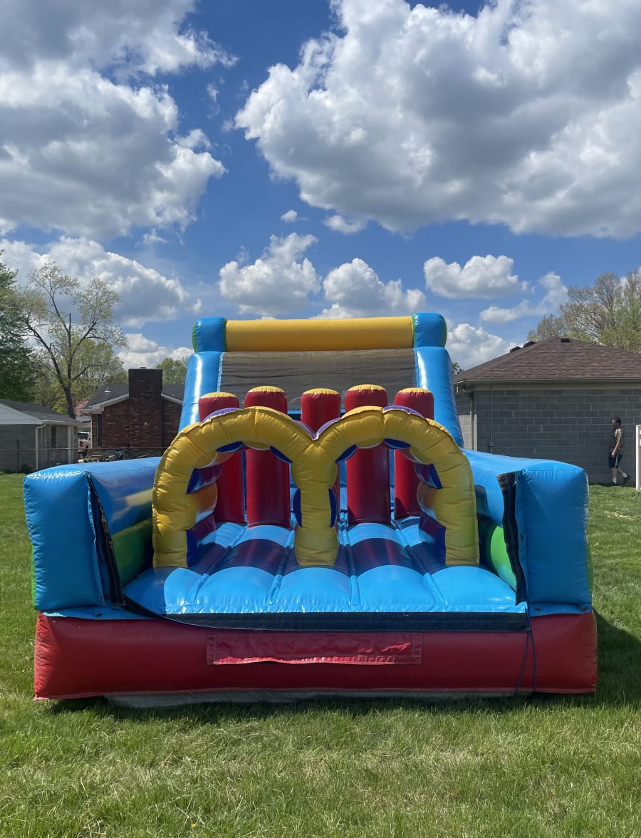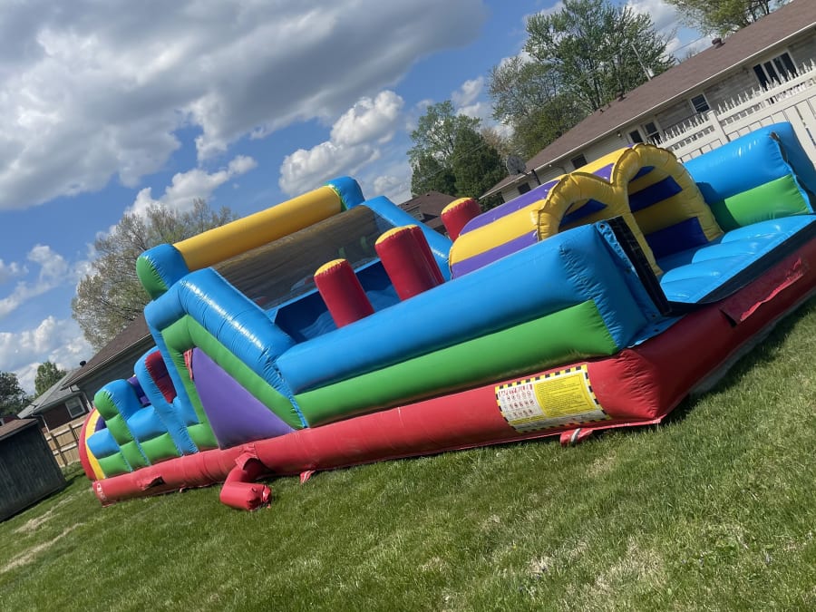 Looking for an eye-catching centerpiece that gets everyone laughing, racing, and sliding? Our 42’ Double Lane Big Obstacle is a colorful, action-packed course designed for groups of all ages. This multi-colored obstacle spans 42’ long and 10’ wide, featuring two side-by-side lanes and a thrilling slide in the middle that keeps the energy up and lines moving. Bounce house rentals 42’ Double Lane Big Obstacle in All of Louisville and surrounding areas, southern Indiana and surrounding areas